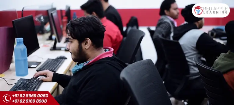 1. Extended Practicals: Unlike any other institutes, Red Apple imparts Full Time professional courses where a student gets to practice upto 48 hours/ week. This not only helps them learn more but also eases their competition at the time of placement.